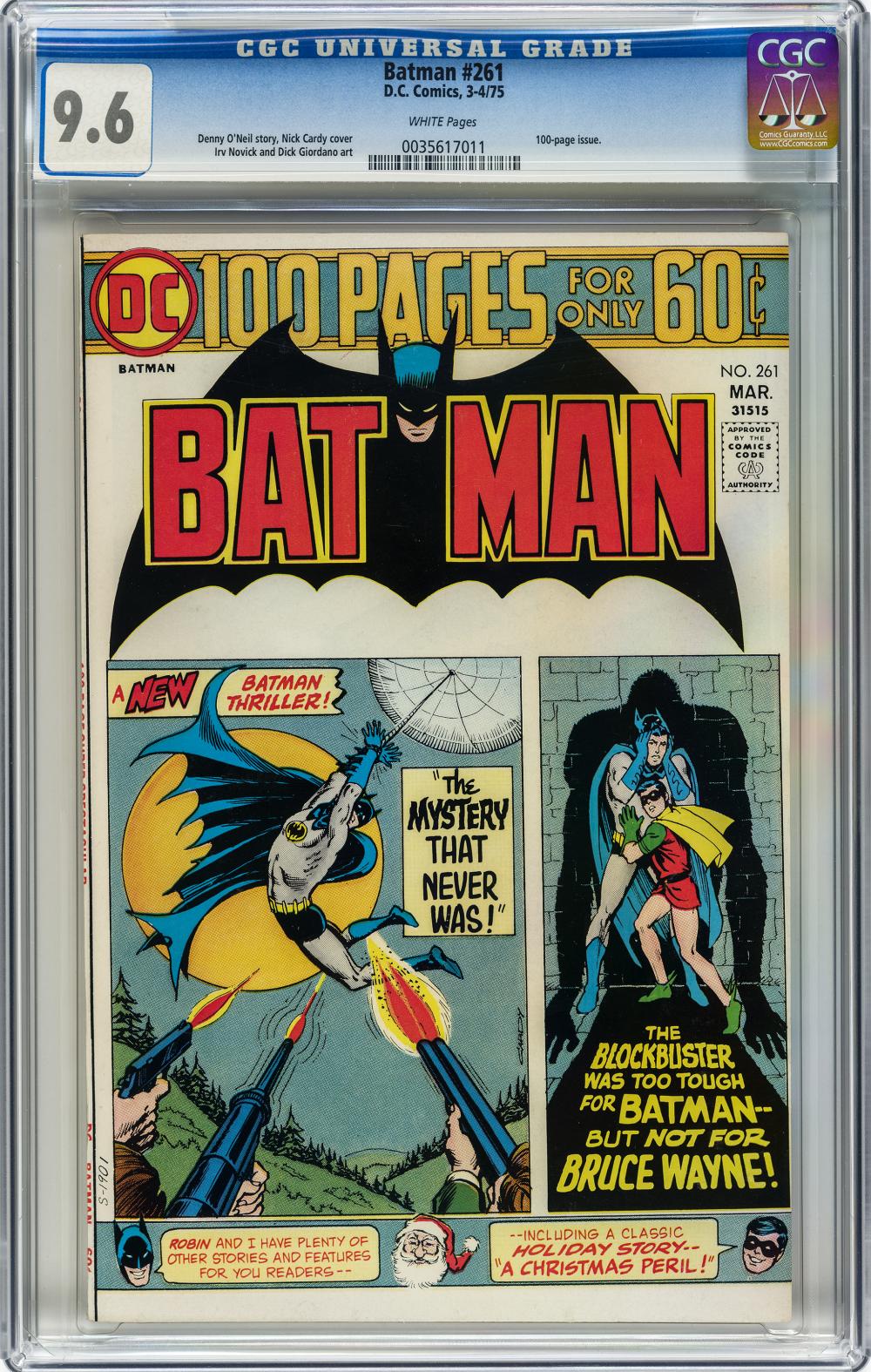 | Description: Giant 100-page issue stars Batman in "The Mystery That Never Was," along with several other exciting adventures, including the famous tale, "The Blockbuster Invasion of Gotham City!" Story by Denny O'Neil with cover art by Nick Cardy and interior art by Irv Novick and Dick Giordano. Second finest grade awarded by CGC! |
